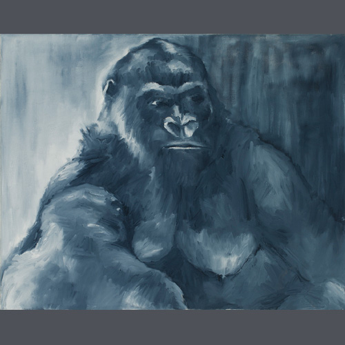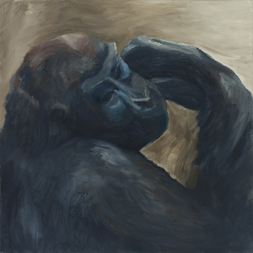 A After feeling a deep sense of connection through the gorilla’s soulful eyes, I began observing them closely at The Franklin Park Zoo, in Boston. Seeking refuge in their deep sense of knowing, I connected to the feeling of captivity. They possessed thoughtfulness and reflection, insecurity, mistrust, dominance, moodiness, humorously loving, a devotion to nurture. I marveled at their endurance that paralleled the human struggle so familiar to me. The gorillas lovingly became the muse I yearned for in my desire to express my inner emotions.